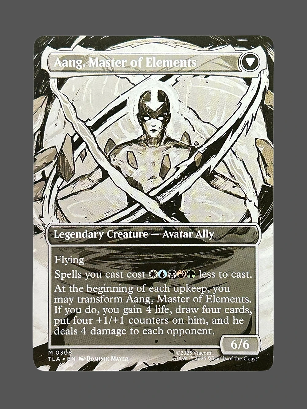 Buy Aang, Master of Elements Holo MTG proxy from The Lost Caverns of Ixalan. Premium cardstock, professional CMYK printing. Perfect for deck testing.