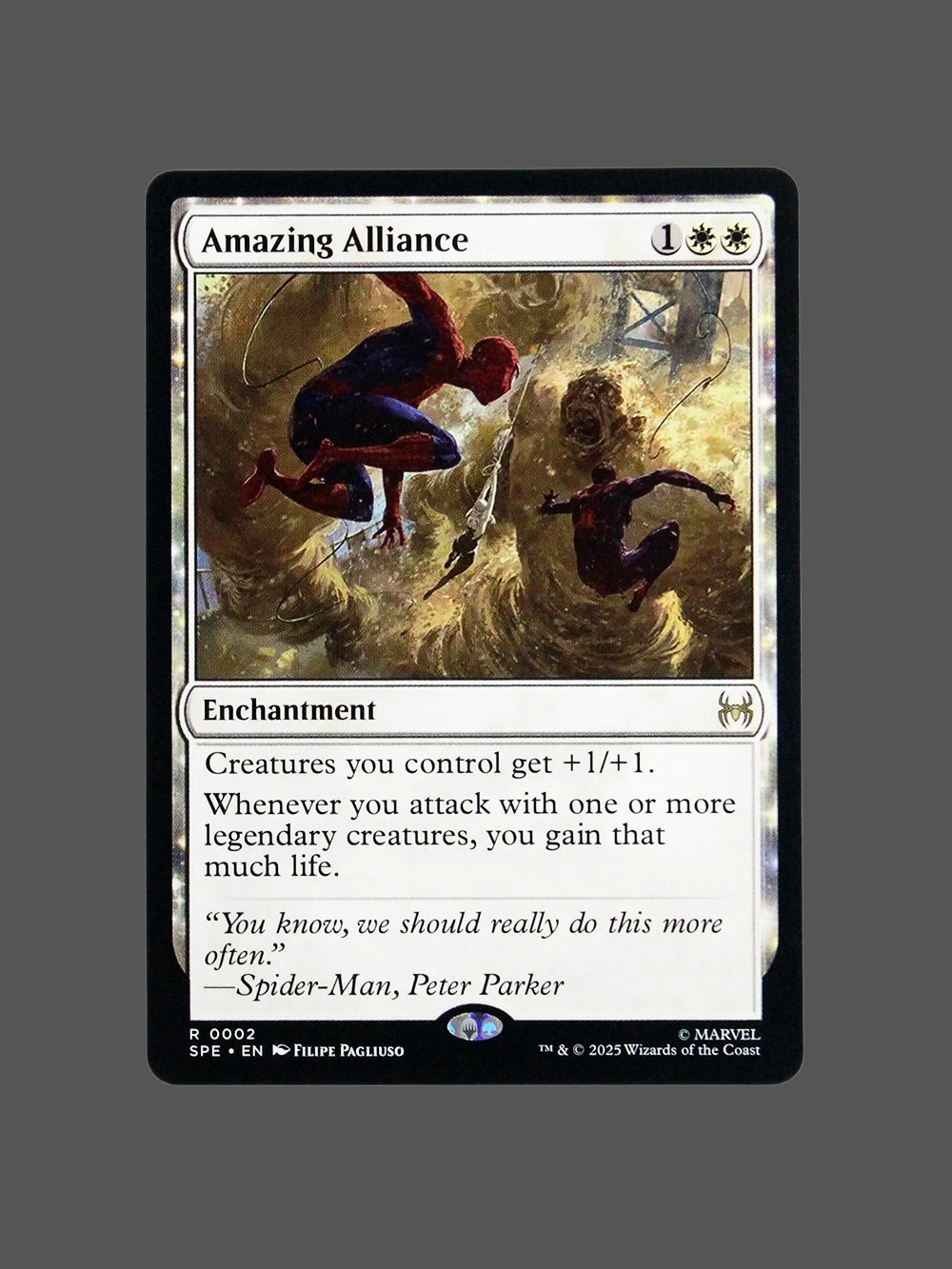 Buy Amazing Alliance Holo MTG proxy from Secret Lair. Premium cardstock, professional CMYK printing. Perfect for Marvel-themed decks.
