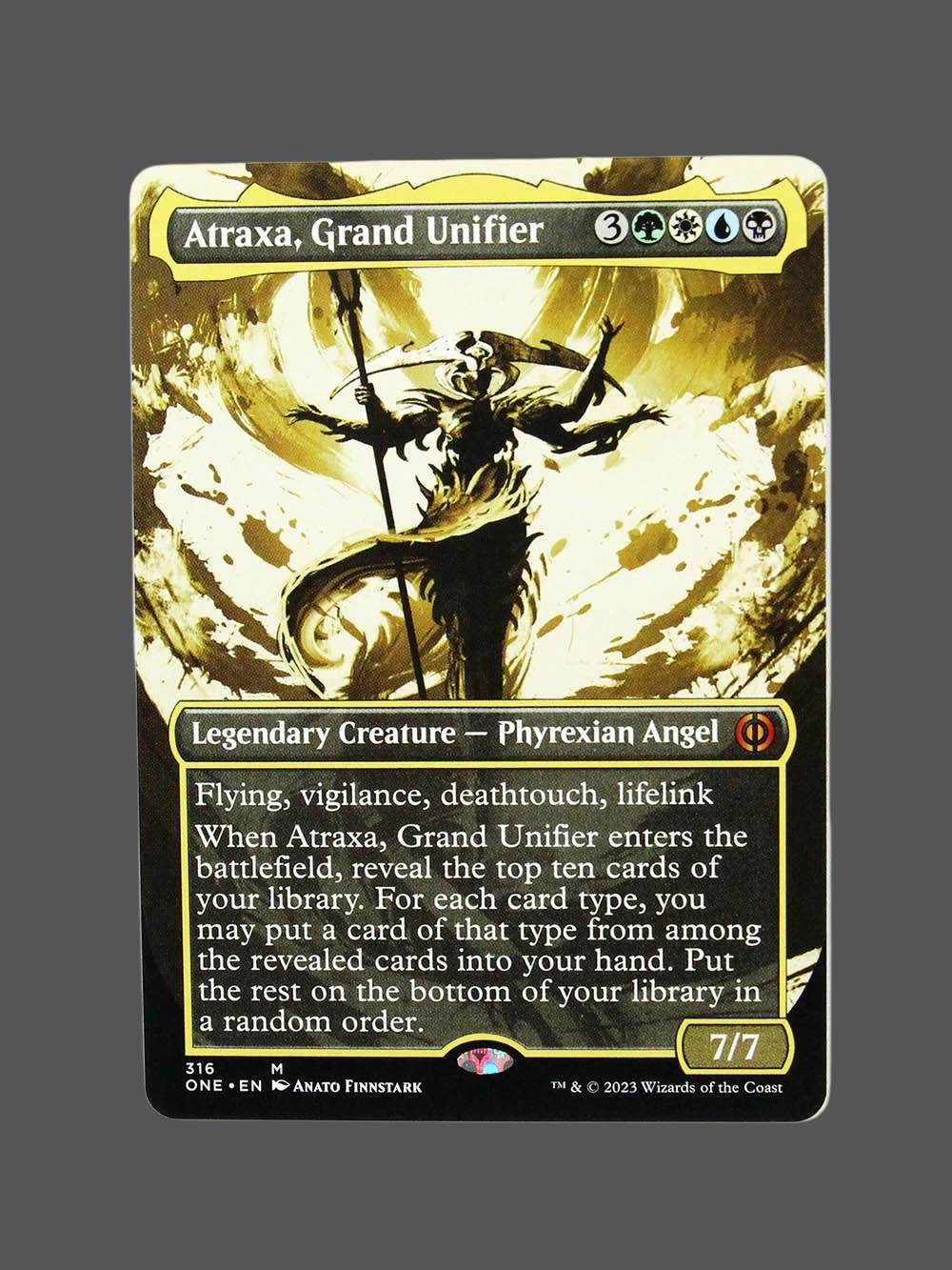Buy Atraxa, Grand Unifier Holo MTG proxy from One-Art. Premium cardstock, professional CMYK printing. Perfect for deck testing.