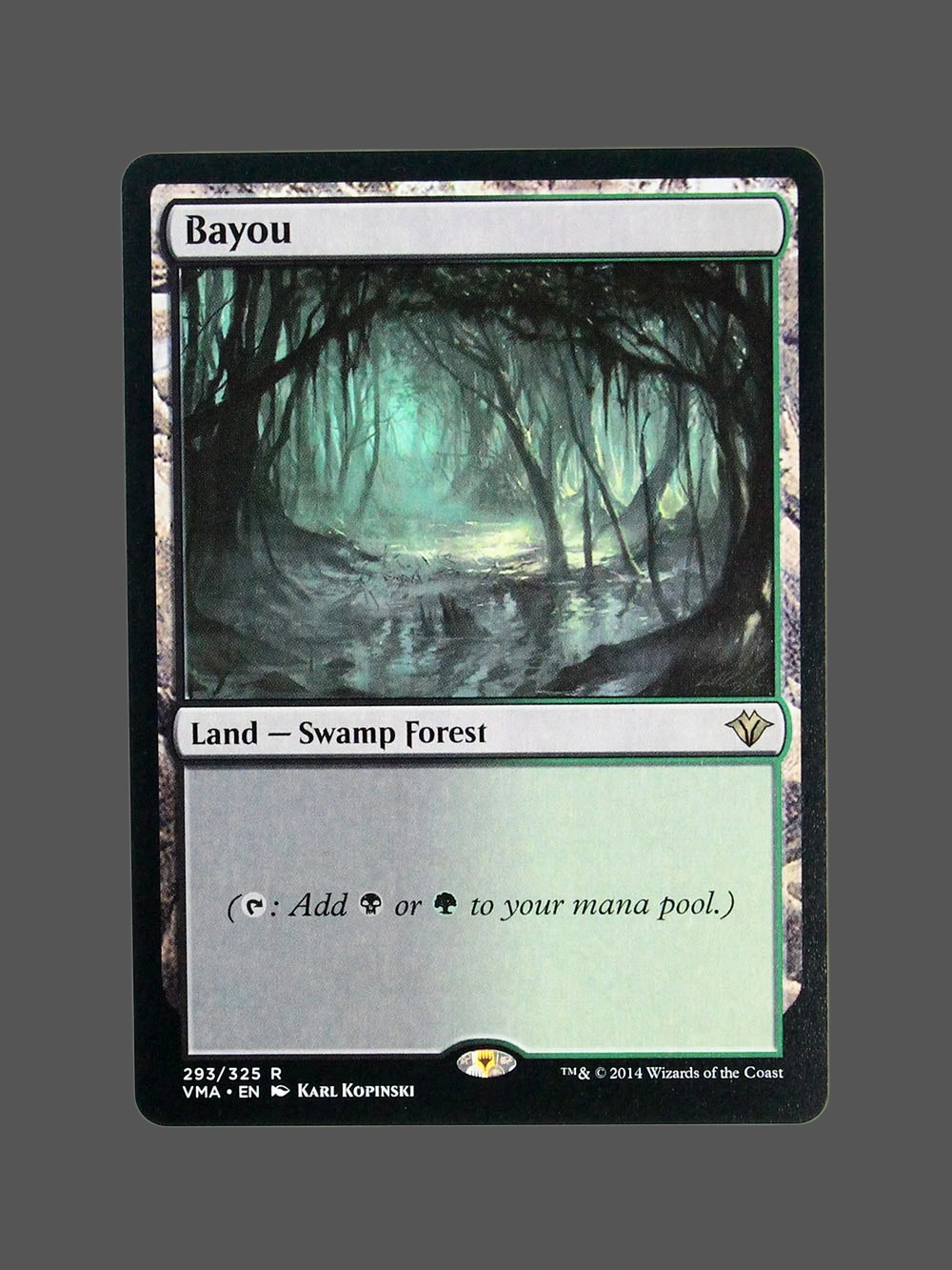 Looking for a high-quality Bayou proxy? This Holo proxy from Visions (VMA) is a Land — Swamp Forest that produces black or green mana, making it a versatile dual land in any deck. Built with German black core paper and professional CMYK printing, it’s virtually indistinguishable from the original.