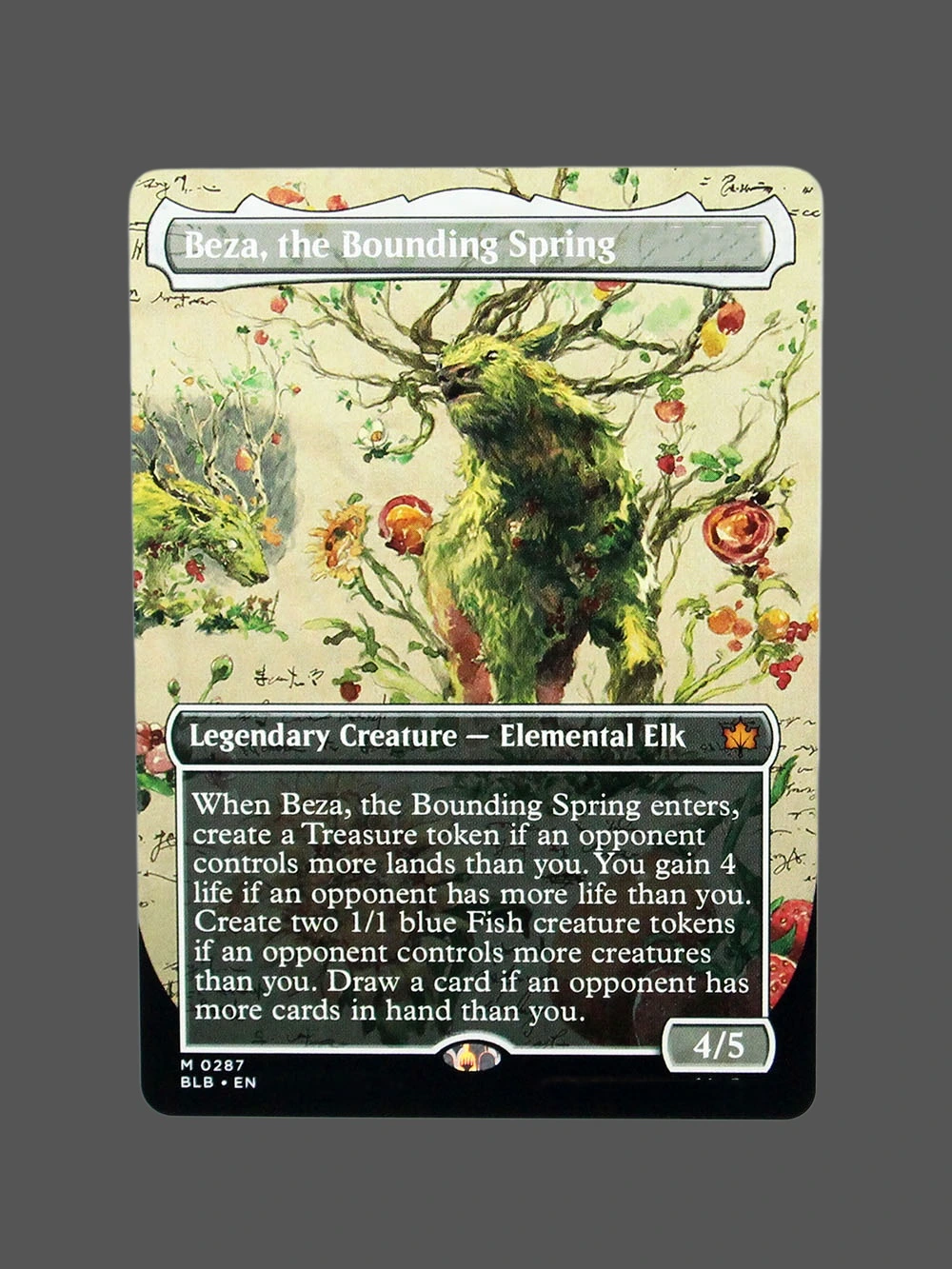 Tags: beza-the-bounding-spring, blb, bloomburrow, elemental-elk, Holo, legendary-creature, mtg-proxy