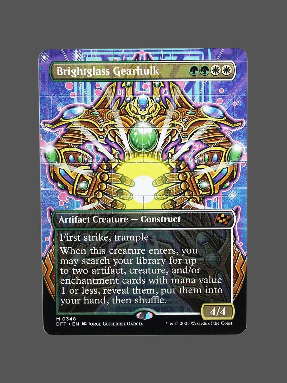 Buy Brightglass Gearhulk Holo MTG proxy from Dominaria United. Premium cardstock, professional CMYK printing. Perfect for deck testing.