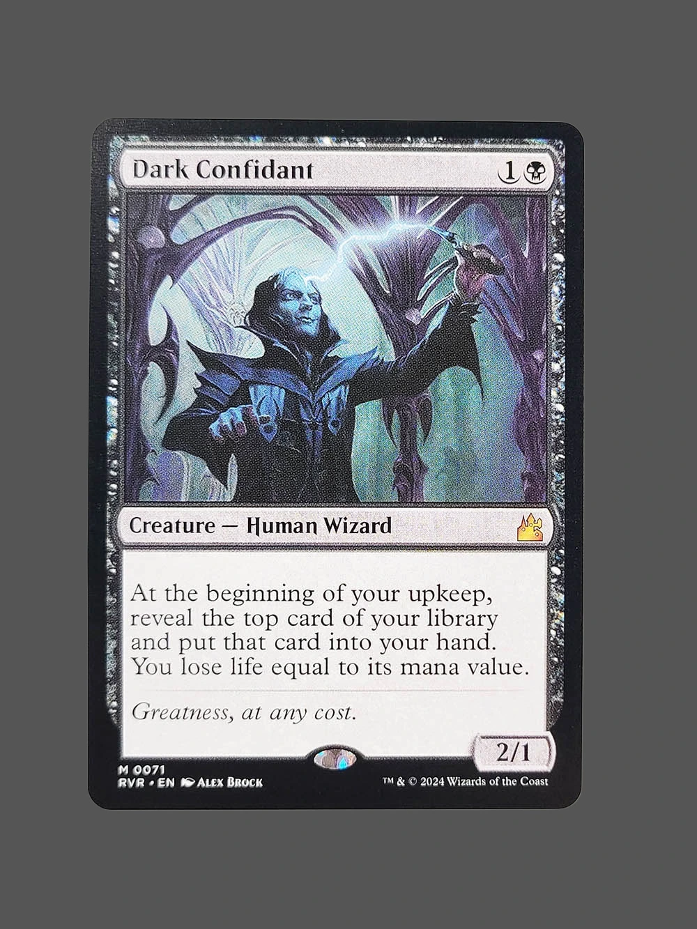 Buy Dark Confidant Holo MTG proxy from Ravnica Remastered. Premium cardstock, professional CMYK printing. Perfect for deck testing.