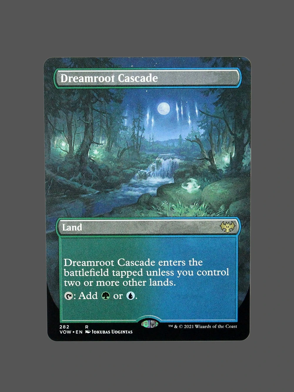 Looking for a high-quality Dreamroot Cascade proxy? This Holo proxy from Kaldheim (VOW) is a Land that enters the battlefield tapped unless you control two or more other lands, and taps to add one green or blue mana. Built with German black core paper and professional CMYK printing, it’s virtually indistinguishable from the original.