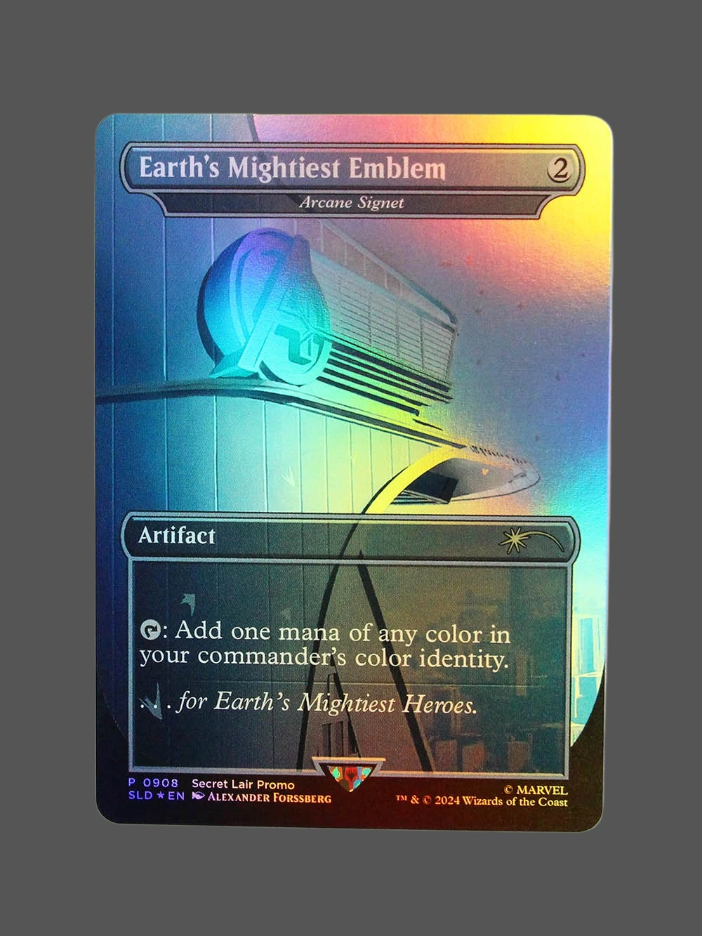 Tags: artifact, colorless, commander, earth's mightiest emblem, Foil, marvel, mtg proxy, secret lair promo, SLD