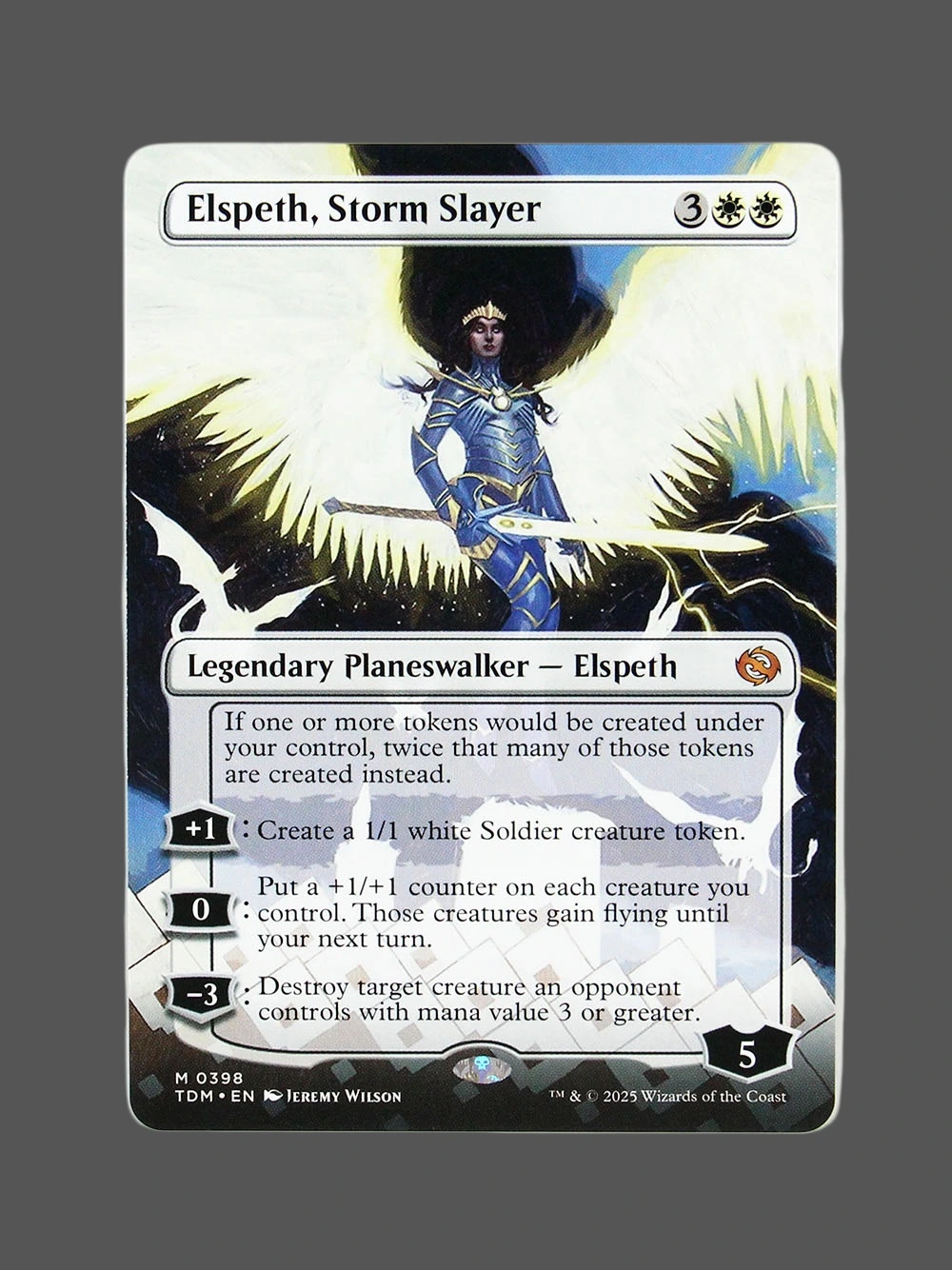 Buy Elspeth, Storm Slayer Holo MTG proxy from The Dark Moon. Premium cardstock, professional CMYK printing. Perfect for deck testing.