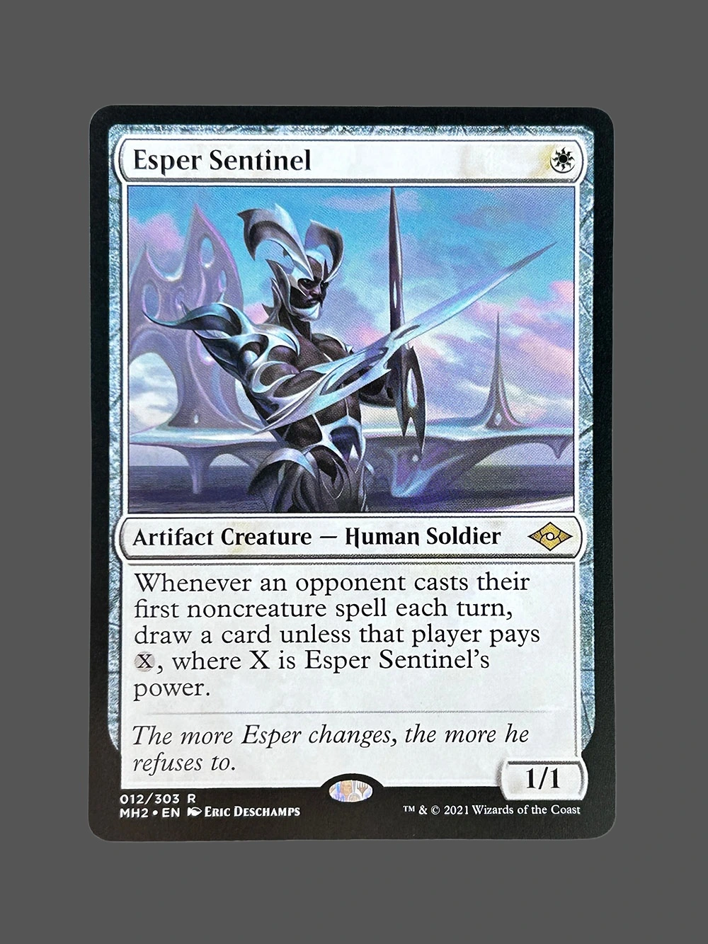 Buy Esper Sentinel Holo MTG proxy from March of the Machine. Premium cardstock, professional CMYK printing. Perfect for deck testing.