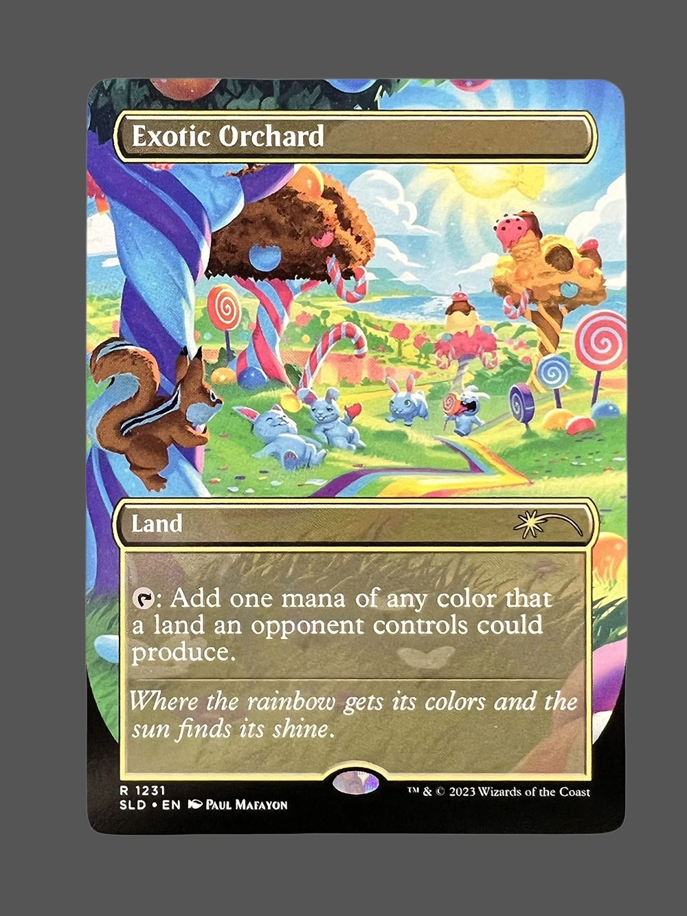 Looking for a high-quality Exotic Orchard proxy? This Holo proxy from Streets of New Capenna (SLD) is a Land that adds one mana of any color that a land an opponent controls could produce, making it a powerful tool in multiplayer formats. Built with German black core paper and professional CMYK printing, it’s virtually indistinguishable from the original.