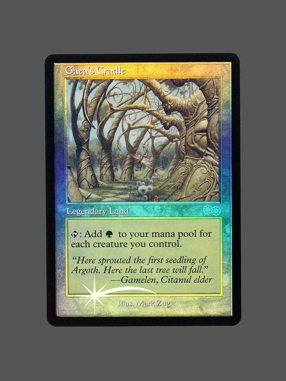 Buy Gaea’s Cradle Foil MTG proxy from Legends. Premium cardstock, professional printing. Perfect for green decks.