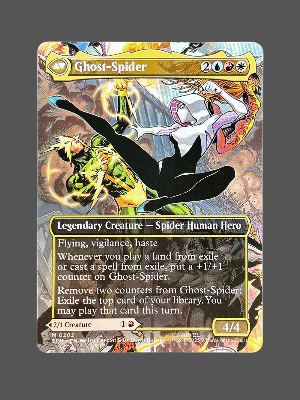 Looking for a high-quality Ghost-Spider proxy? This Holo proxy from Marvel Snap (SPM) is a Legendary Creature — Spider Human Hero that combines flying, vigilance, and haste with powerful exile-based abilities. Built with German black core paper and professional CMYK printing, it’s virtually indistinguishable from the original.
