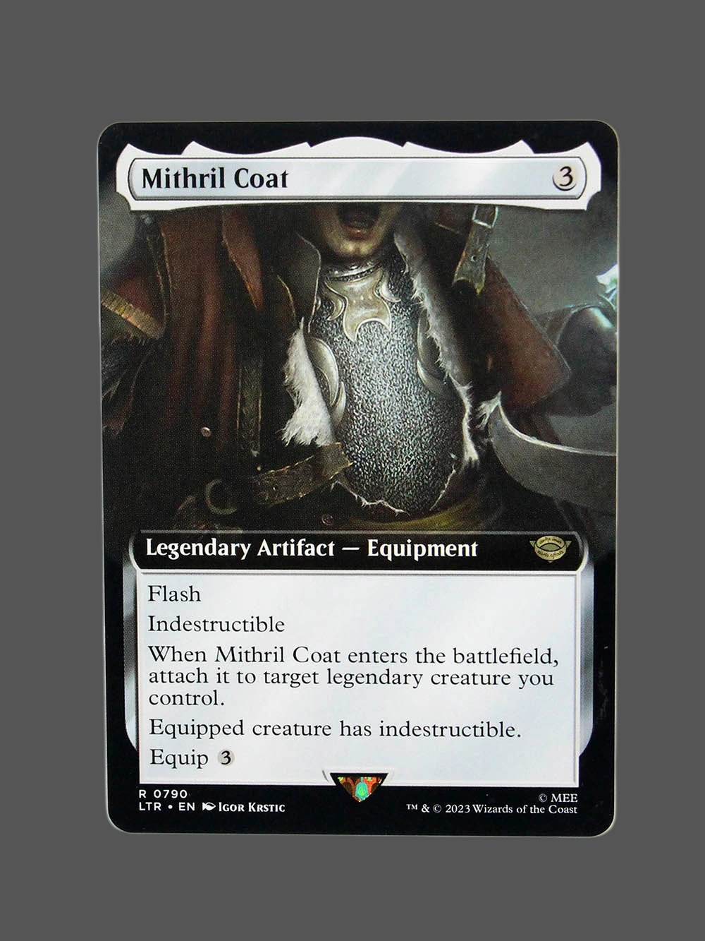 Looking for a high-quality Mithril Coat proxy? This Holo proxy from Lost Caverns of Ixalan (LTR) is a Legendary Artifact — Equipment that grants indestructible to any legendary creature you control. With its powerful effect and iconic design, it’s a favorite among players building decks around legendary creatures. Built with German black core paper and professional CMYK printing, it’s virtually indistinguishable from the original.