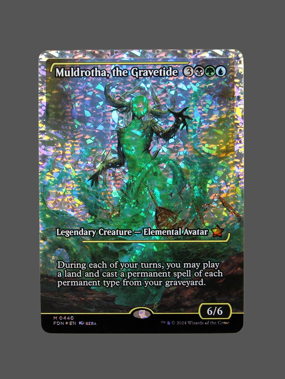 Tags: elemental-avatar, fdn, foundations, fracture foil, fracture-Fracture Foil, green-mtg, legendary-creature, mtg-proxy, muldrotha-the-gravetide