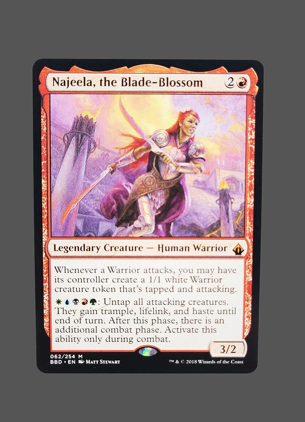 Tags: battlebond, bbd, Holo, human-warrior, legendary-creature, mtg-proxy, najeela-the-blade-blossom, white
