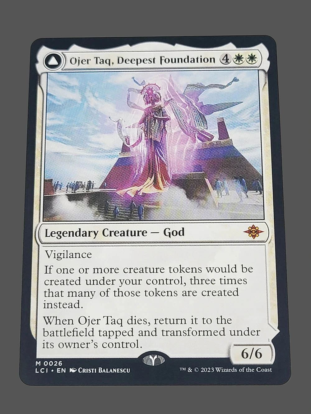 Tags: god, Holo, lci, legendary creature, lost caverns of ixalan, mtg proxy, ojer taq deepest foundation, white