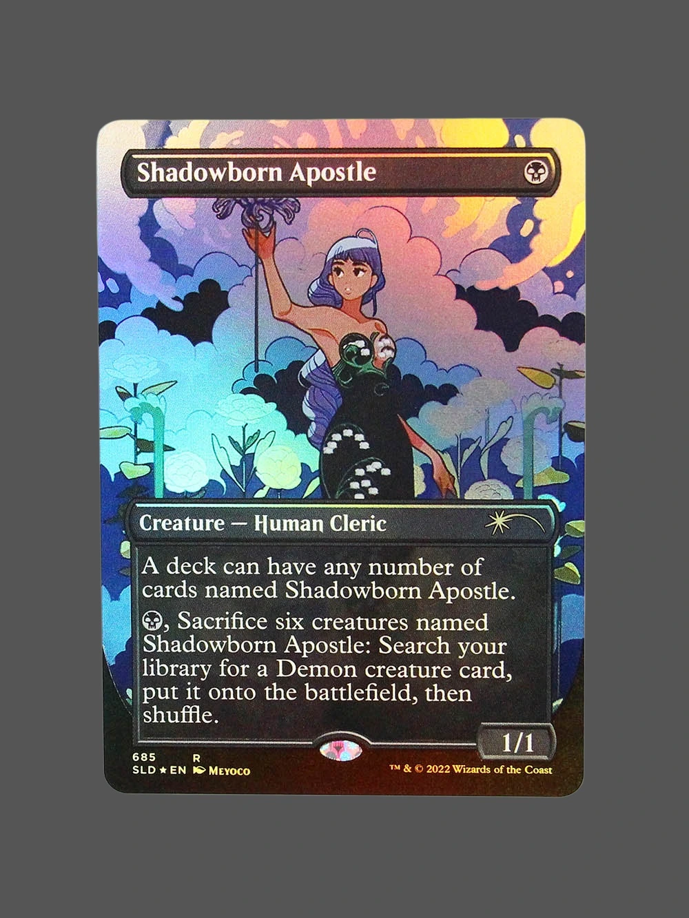 Looking for a high-quality Shadowborn Apostle proxy? This Foil proxy from Streets of New Capenna (SLD) is a Creature — Human Cleric that allows you to include multiple copies in your deck and search for a Demon creature when six are sacrificed. Built with German black core paper and professional CMYK printing, it’s virtually indistinguishable from the original.