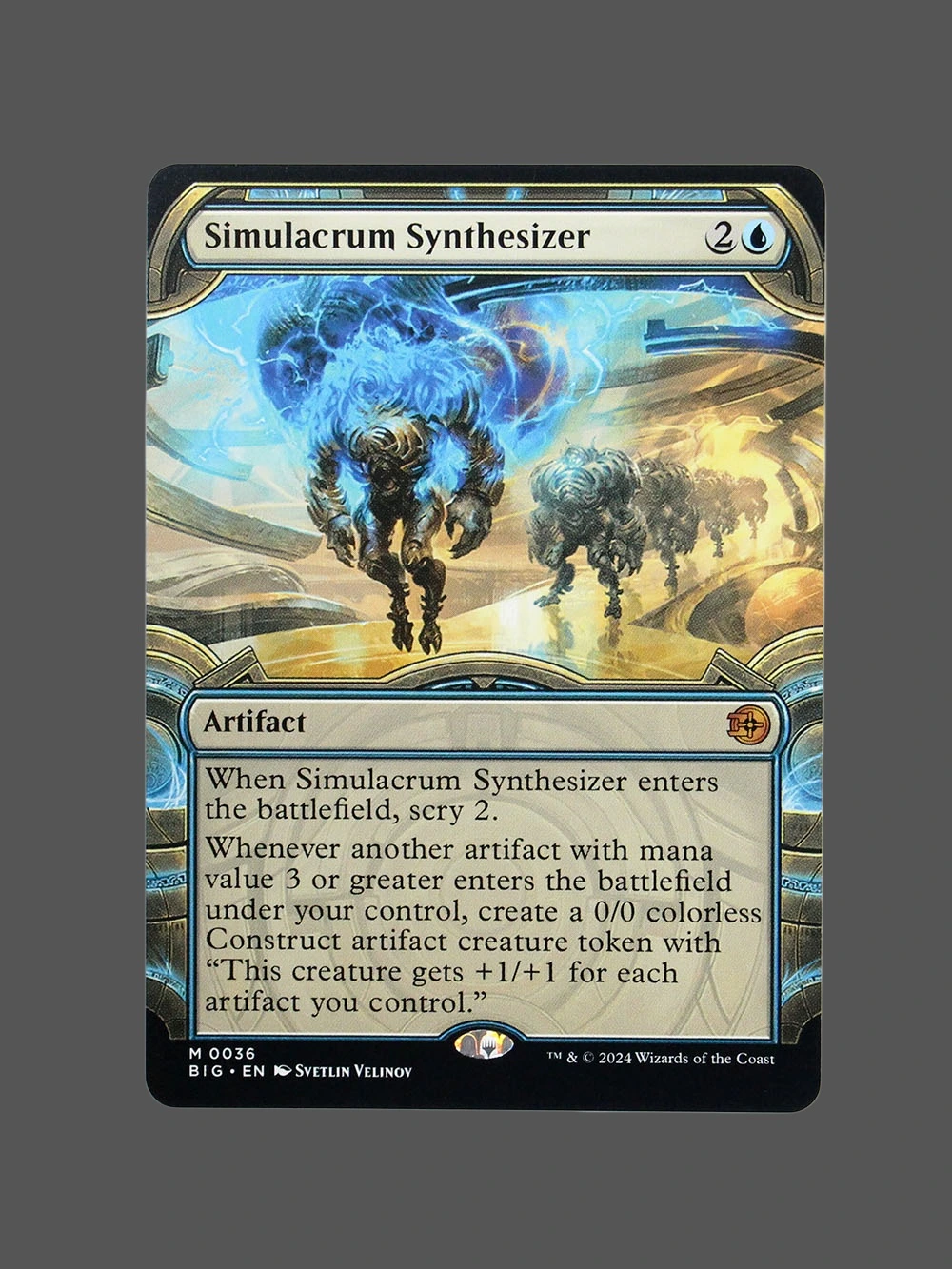 Looking for a high-quality Simulacrum Synthesizer proxy? This Holo proxy from Murders at Karlov Manor (M036) is an Artifact that triggers when entering the battlefield and creates Construct tokens whenever you play larger artifacts. Built with German black core paper and professional CMYK printing, it’s virtually indistinguishable from the original.