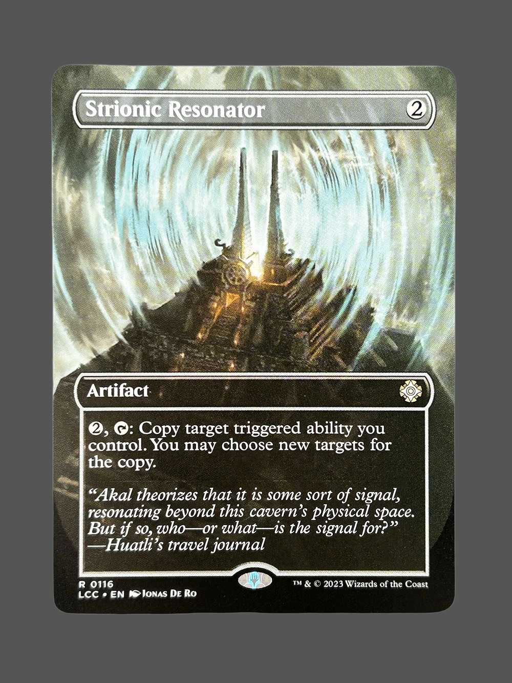 Looking for a high-quality Strionic Resonator proxy? This Holo proxy from Lost Caverns of Ixalan (LCC) is an Artifact that lets you copy a triggered ability you control, with the option to choose new targets. Ideal for players who want to test powerful combos or playtest decks without spending on originals. Printed with precision and care, this proxy delivers authentic gameplay experience.