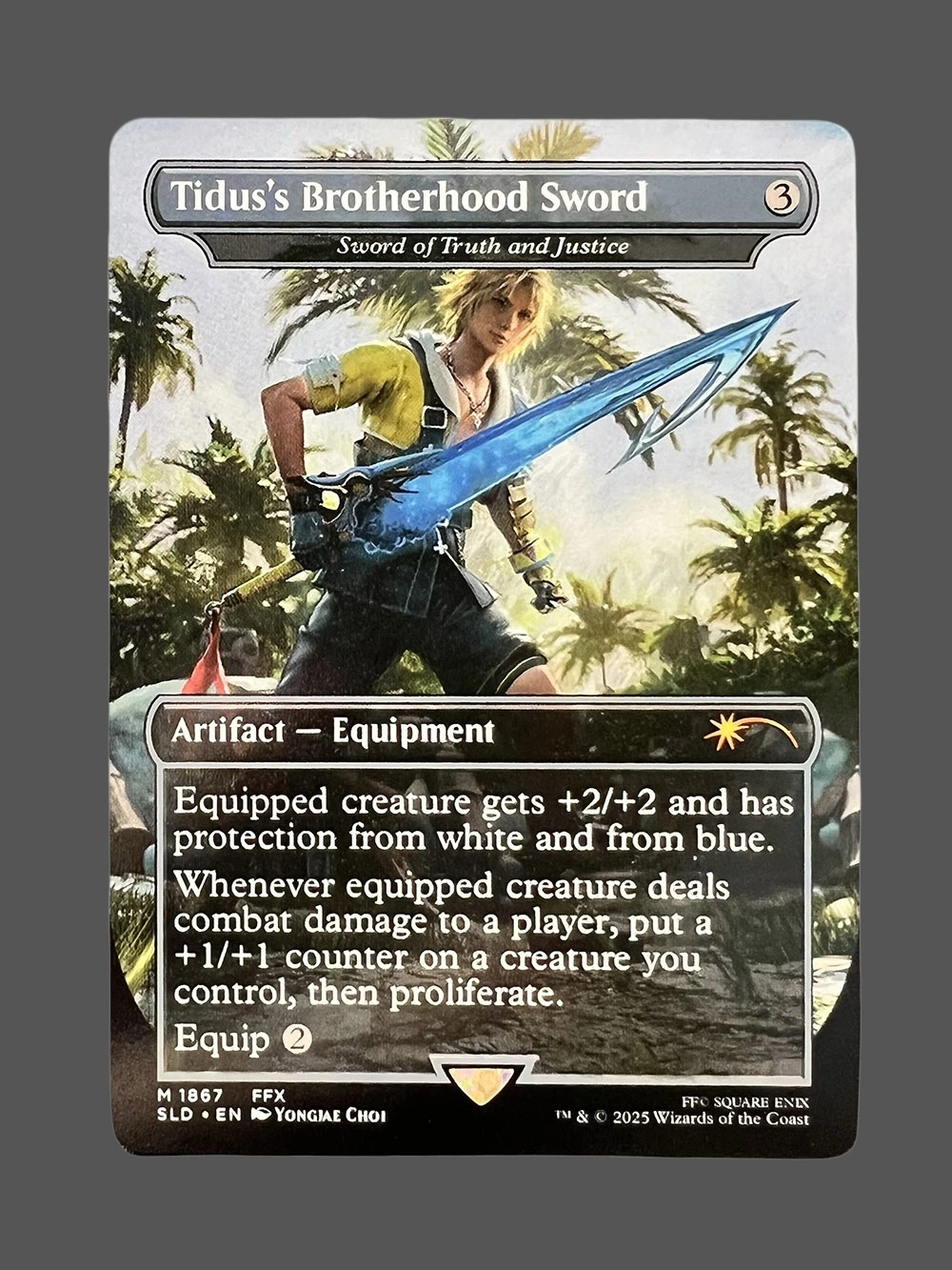 Buy Tidus’s Brotherhood Sword Holo MTG proxy from Secret Lair Drop. Premium cardstock, professional CMYK printing. Perfect for deck testing.