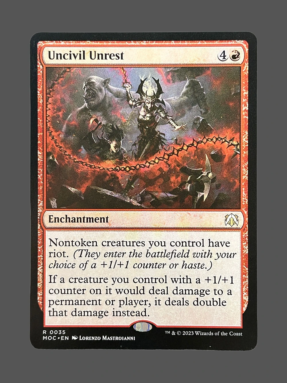 Buy Uncivil Unrest Holo MTG proxy from March of the Machine. Premium cardstock, professional CMYK printing. Perfect for deck testing.