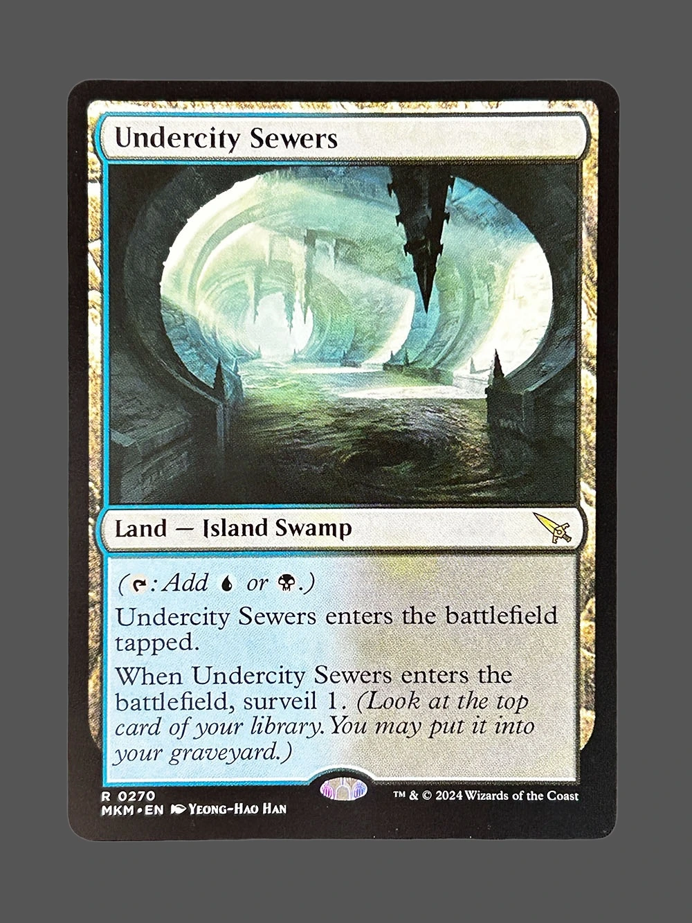 Looking for a high-quality Undercity Sewers proxy? This Holo proxy from March of the Machine (MKM) is a Land — Island Swamp that adds blue or black mana and triggers surveil when it enters the battlefield. Built with German black core paper and professional CMYK printing, it’s virtually indistinguishable from the original.