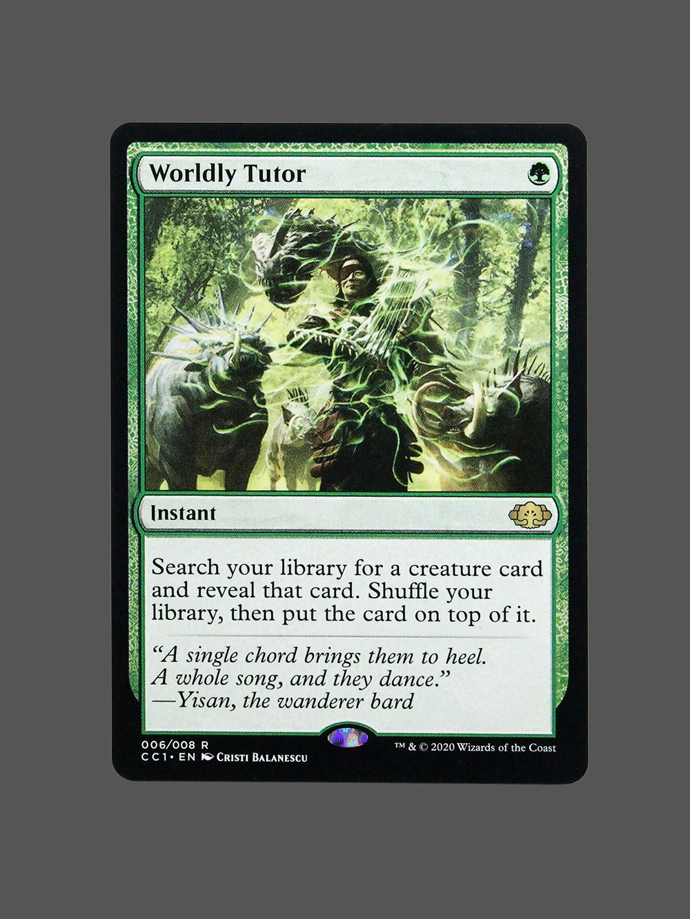Buy Worldly Tutor Holo MTG proxy from Commander 2021. Premium cardstock, real holo stamp, accurate artwork. Perfect for deck building.